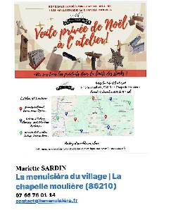 Suite à l'engouement que cet événement avait suscité l'an passé, je vous convie à mon atelier, ce samedi 20 décembre, afin de profiter d'une vente privée sur tous les objets en bois fabriqués par mes soins.